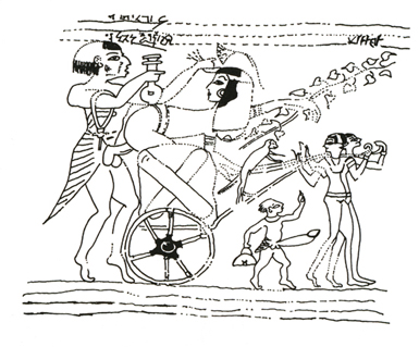 En el papiro destaca la presencia de una especie de sonajero denominado ‘sistro’, instrumento relacionado con la diosa Hathor, diosa del amor, la música y la fiesta.
