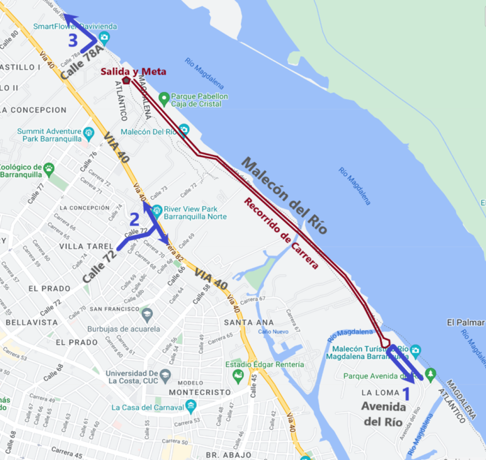 Por carrera atlética 8K programadas en el Barrio Las Nieves, se ha programado para el sábado 23 de julio del 2022 desde las 6:00 am hasta las 9:00 am, los siguientes cierres totales de vías: