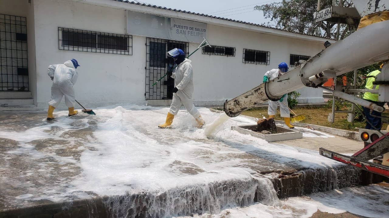 Para la limpieza se están usando los camiones de Cemex y Ultracem, encargados de distribuir el jabón, y los del Cuerpo de Bomberos que con las mangueras a alta presión terminan el lavado. Para la desinfección se usa hipoclorito de sodio.