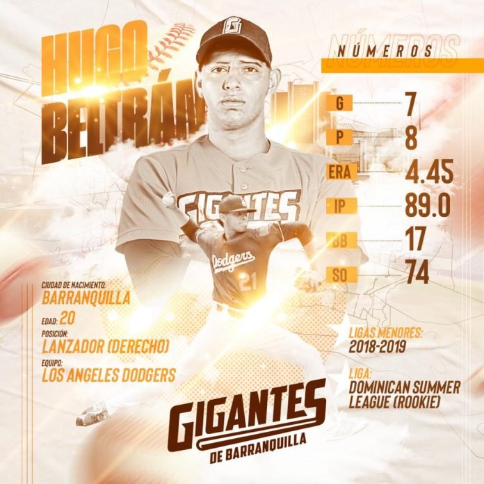 Con miras a la temporada 2020-2021 del béisbol profesional colombiano, Gigantes de Barranquilla se complace en anunciar la firma del lanzador Hugo Beltrán, perteneciente a los Dodgers de Los Ángeles en el béisbol organizado.