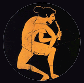 | Mujer con dildo en cerámica de Grecia Antigua (490 a.C.). |