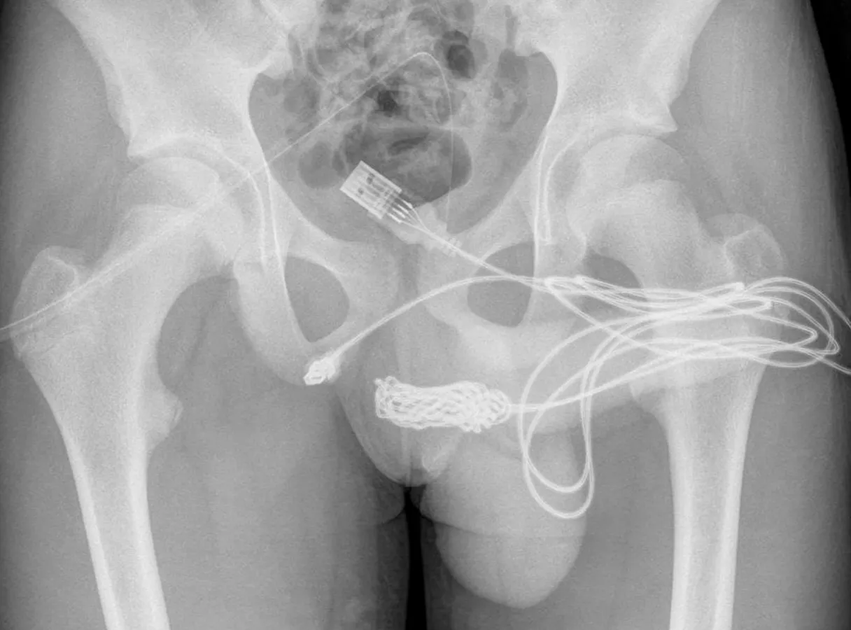El curioso experimento no tuvo éxito: una vez que comenzó a orinar sangre, sus padres lo llevaron al hospital.Al examinar al joven, de 15 años, los médicos del University College Hospital de Londres vieron que el cable había quedado en su escroto, como si fuera un catéter electrónico. La radiografía reveló que tenía un verdadero nudo dentro de sus genitales.