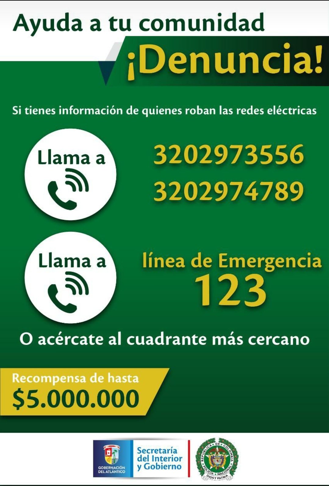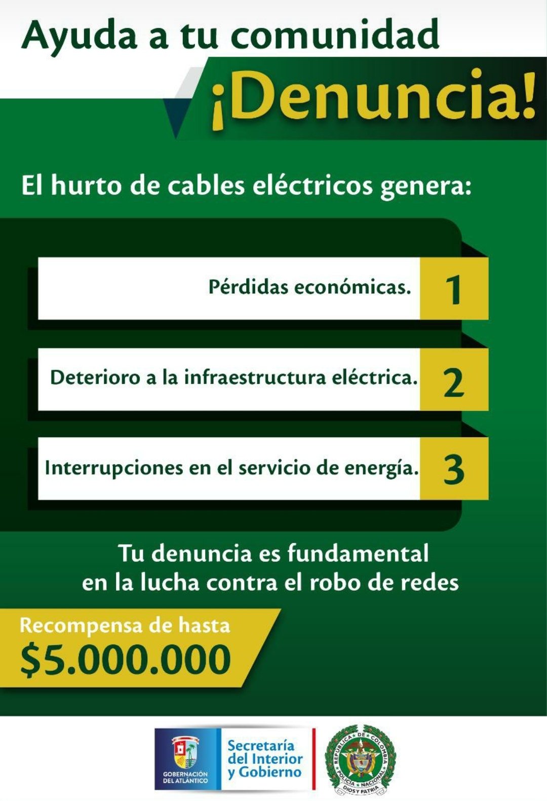 La Policía Nacional continuará con los operativos de vigilancia para contrarrestar este acto ilegal que pone en riesgo la integridad de las personas y el buen funcionamiento del sistema de distribución de energía e invita a la comunidad a denunciar. La mayoría de casos denunciados se han registrado en Palmar de Varela, Ponedera, el corregimiento de Martillo, Manatí, Candelaria y Sabanalarga.