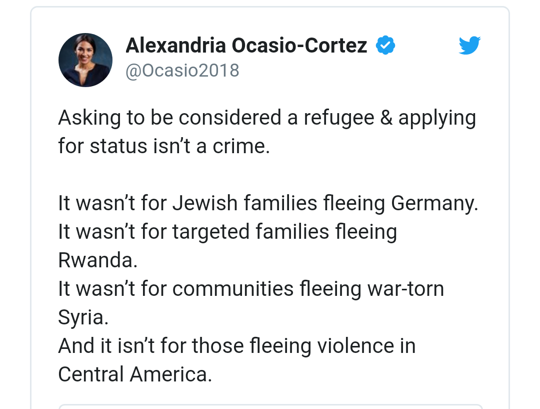 Otros, como la nueva representante demócrata de Nueva York Alexandria Ocasio-Cortez, reiteraron que las familias de inmigrantes huían de condiciones violentas en América Central y tenían derecho a buscar asilo. «Pedir ser considerado un refugiado y solicitar el estatus no es un delito».