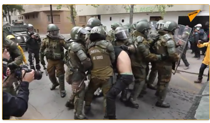 Cientos de personas se congregaron en las calles de Santiago de Chile para expresar su rechazo a las políticas del Gobierno de Sebastián Piñera y pedir libertad para los presos del estallido social.Los manifestantes arrojaron piedras y cócteles molotov a los antidisturbios. Los uniformados, a su vez, usaron cañones de agua y gases lacrimógenos para dispersar a la multitud. Al menos 15 personas resultaron detenidas a raíz de la protesta.El estallido social es una crisis que comenzó con una serie de manifestaciones violentas que incluyeron la quema de estaciones de metro y supermercados, pero que posteriormente devino en un proceso pacífico de masivas protestas ciudadanas exigiendo cambios en el sistema económico neoliberal. El movimiento dio paso al proceso constitucional que se inició en el país el 25 de octubre de 2020 con un plebiscito ciudadano en el que el 78% de los chilenos votó por una nueva Constitución.