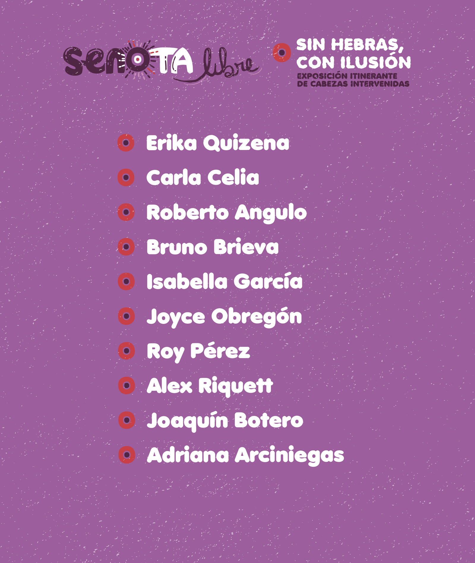 Los expositores que aportaron su talento para esta causa son: Judy Hazbún, Patricia Quevedo, Giselle Borras, Luisa Fernanda Sepúlveda, Luisa Cristina Sepúlveda, Michelle Betancourt, Elsa Marina Losada, Ana Cristina Bojanini, Joelle Daccarett, Michelle Daccarett, Carolina Segebre, Erika Quizena, Carla Celia, Roberto Angulo, Bruno Brieva, Isabella García, Joyce Cervantes, Roy Pérez, Alex Riquett y Joaquín Botero.